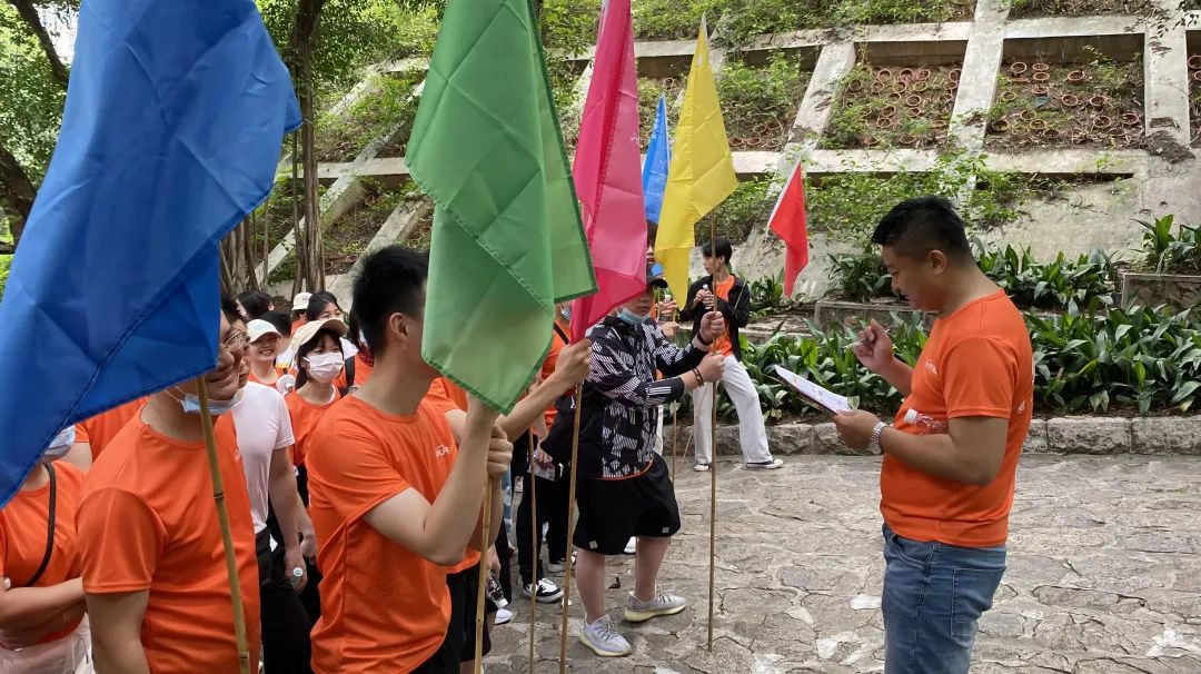 此次活动的前半程,是南方网通第十六届登山比赛。早上8:00,全员齐聚大南山山脚,整装待发。十支整齐划一的队伍,身着橙色登山服彰显朝气与活力。各个小组队长扛着南方网通的大旗,彰显队伍士气,声势浩荡,蓄势待发。